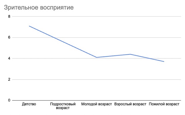 Возрастные особенности: В раннем возрасте и в детстве зрительная система является основным каналом восприятия информации. Дети обычно активно воспринимают окружающий мир, и зрительная стимуляция, такая как реклама, может вызывать сильную реакцию.