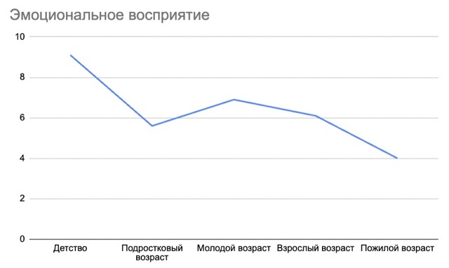 Среди детей до 12 лет наиболее распространённый тип восприятия информации в рекламе — эмоциональное восприятие. В то же время у пожилых людей в возрасте 56 лет и старше этот показатель самый низкий. Это может быть объяснено следующими факторами: